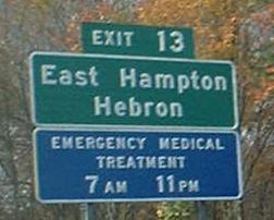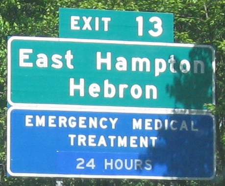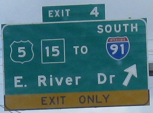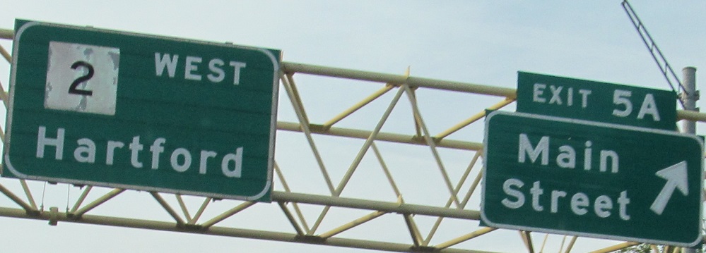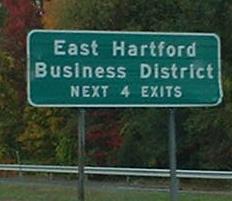 Taking the right fork toward E. Hartford (the I-284 stub) gives you this sign.
