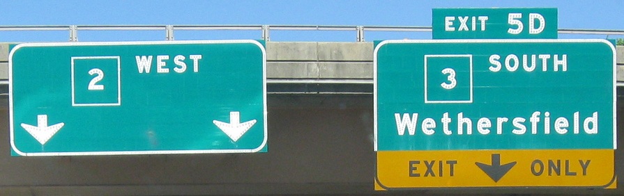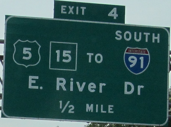 Not sure why the exit tab feels the need to be a renegade. CT 3 was completed more recently than other connections to CT 2, so even though I-91 SB is signed this way and in fact best reached this way, you'll see more signage for it in a moment from when this opportunity to cross the river didn't exist.