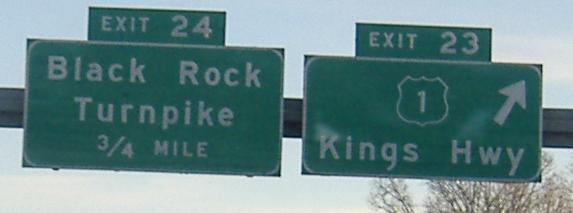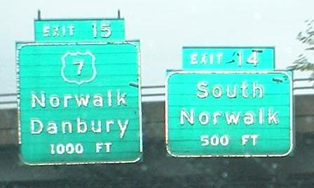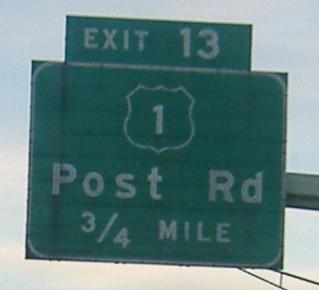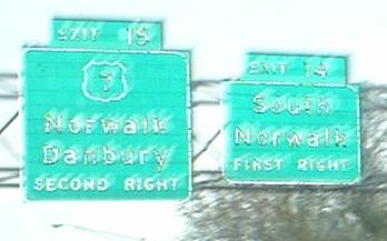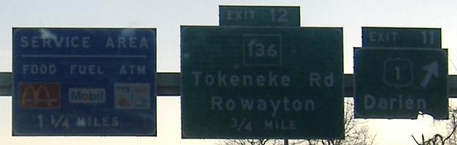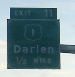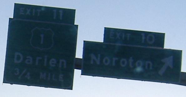 The 1970 sign, courtesy Michael Summa, doesn't tell you Exit 11 is US 1, but it does tell you that Exit 10 is Noroton Ave., which I find more helpful, considering Noroton is not an actual incorporated entity.