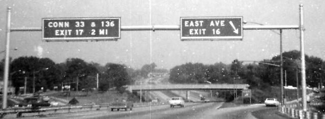 In 1970, the US 7 freeway was not yet "completed" in Norwalk (if you read the history, you'll understand the quotation marks), so Exit 15 just connected to West Ave. (which is now accessible to or from I-95 to the south only via Exit 14). Photo courtesy Michael Summa.