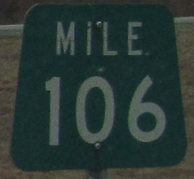 The first photo is to show you how tiny the mile markers are. The second is to show you an old centered and unlabeled exit number with far too many arrows.