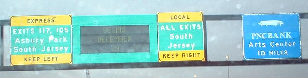 Only in the SB local lanes does this exit have squareless shields (i.e. missing their traditional black background), a practice that's starting to creep over NJ's newest signage and has long been infiltrating the Garden State Parkway stealthily. The centered, separate exit tab is another Parkway-specific, non-uniform practice (scroll around this page for more).