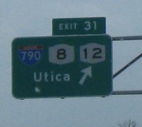 Past the tolls on Exit 31, which is for I-790 as well as NY 5, 8, and 12, courtesy Doug Kerr. The exit connects with Genesee Street, while I-790 also connects with Genesee, ending a short bit to the east. Westward, I-790 multiplexes with NY 5 to NY 8/12, and soon dies amidst the confusion, never having met its parent.