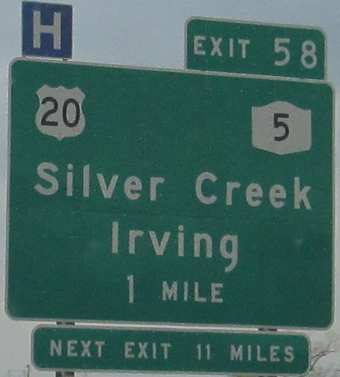 Coming back east toward I-90. The I-90 shield on the left was state-name, but sun glare wipes it out and they're gone now. You can see that two lanes flow for the EB movement - they join three lanes on I-90 after a very high-speed curve (55 MPH possible, signed for 45), telling how much traffic was expected to use this ramp.