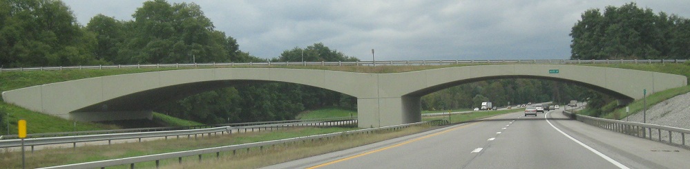 Where the concrete of the full-freeway interchange abruptly ends and the grass-median boulevard begins. The new guiderail tapers off of the old here as well.