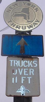 Another beginning - like in California, Interstates transmogrify into state routes all the time in NY, although this change in direction is unusual (then again, it happens on such routes as NY 7 which don't transmogrify). First photo is westbound, and the second photo is on the ramp from I-90 (post-toll, so both EB and WB traffic sees this).