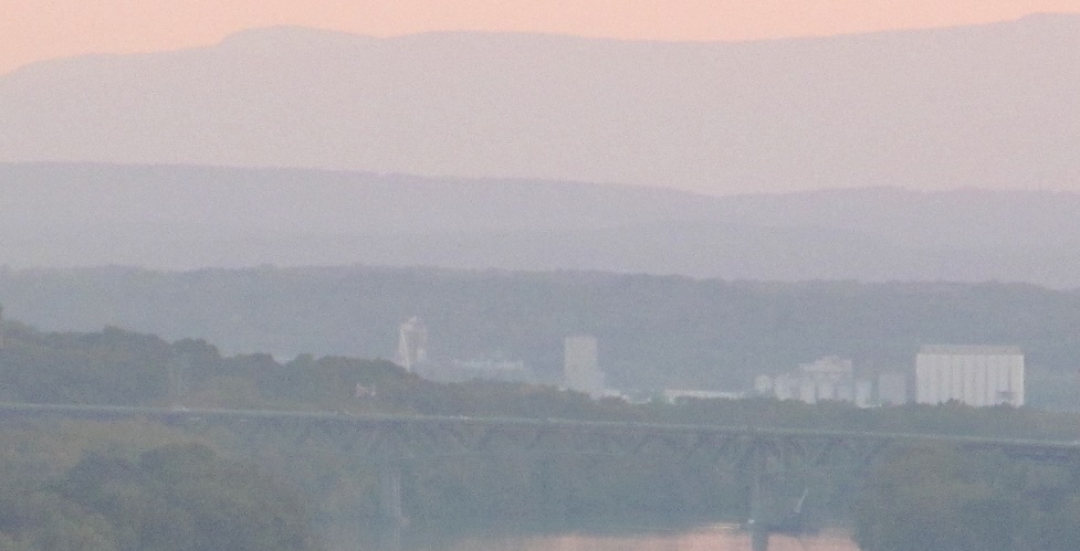Looking south nearly 5 miles from Troy's Prospect Park at the I-90 Patroon Island Bridge across the Hudson River with its underdeck truss.