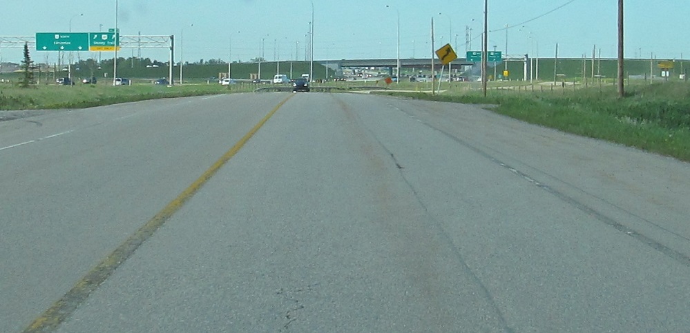 Two minutes later, the prophecy of the AB 2 shield is fulfilled, as Sparrow Dr. in Nisku is very obviously an old mainline as it becomes an entrance ramp to its modern alignment.