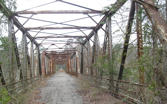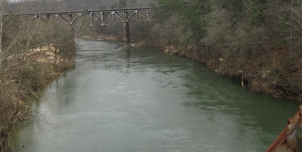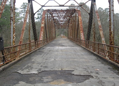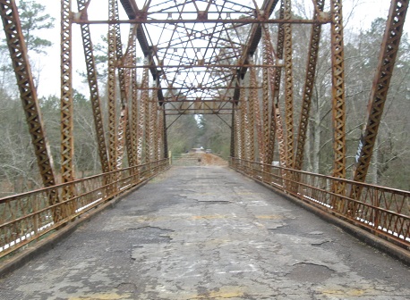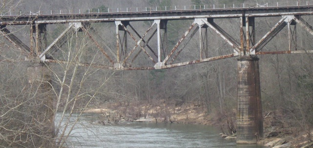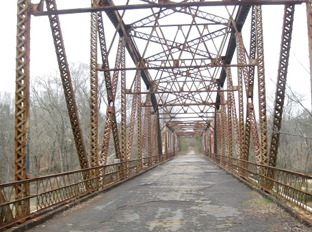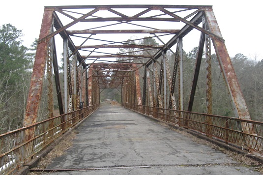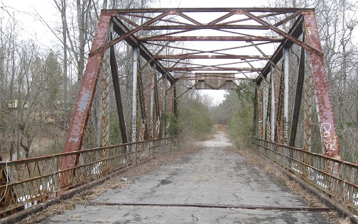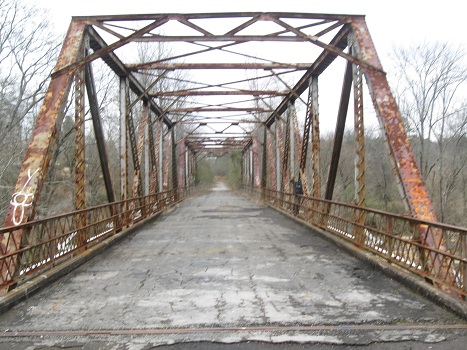 It's a short drive on US 31 out of Garden City before you cross the Warrior River Mulberry Fork, and if you happen to look left, you'll see something that looks like a railroad bridge, but less sturdy. Make the next left, and when you hit the dirt pile on Old US 31 NB you'll see this.