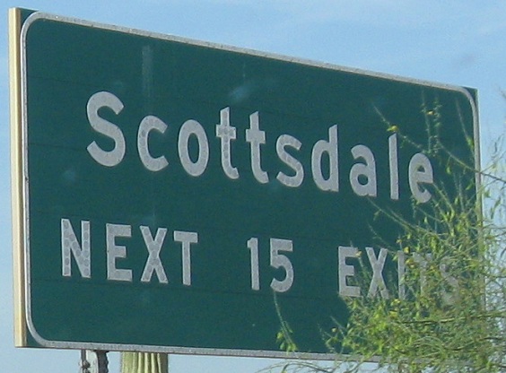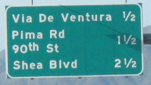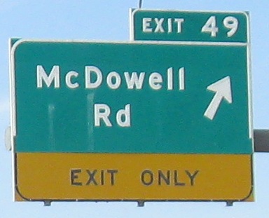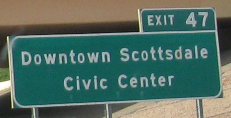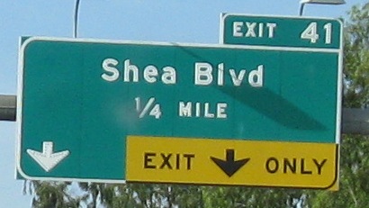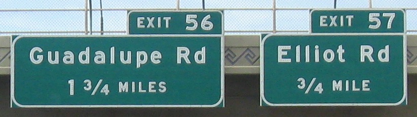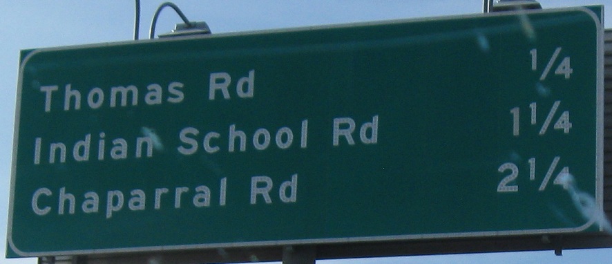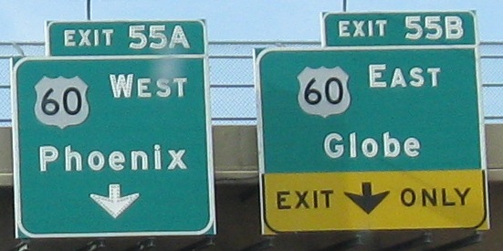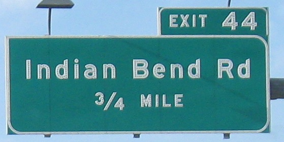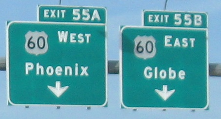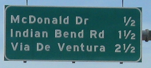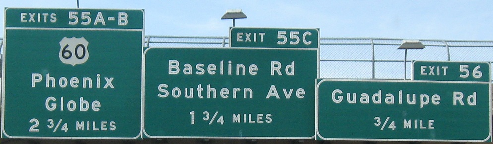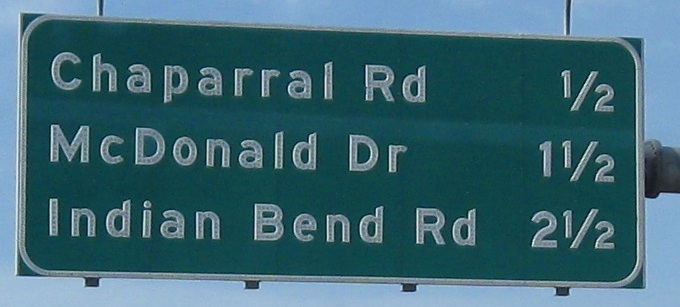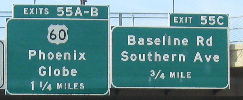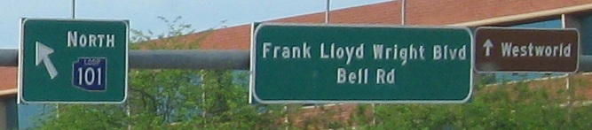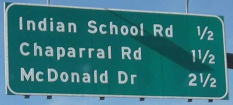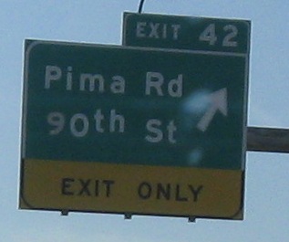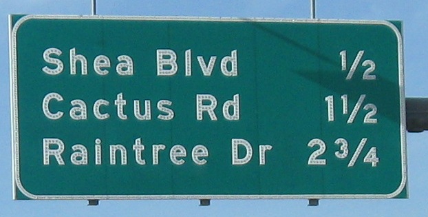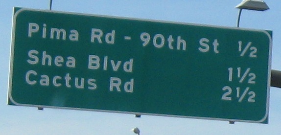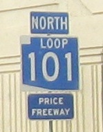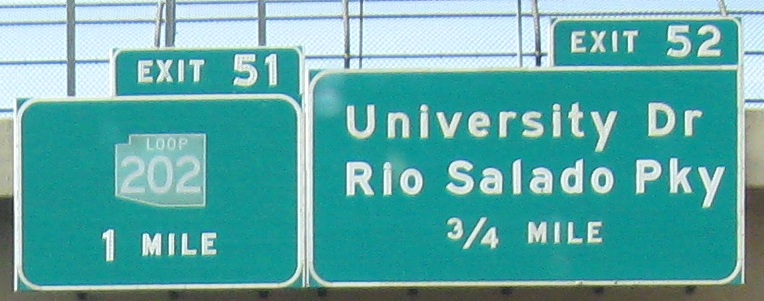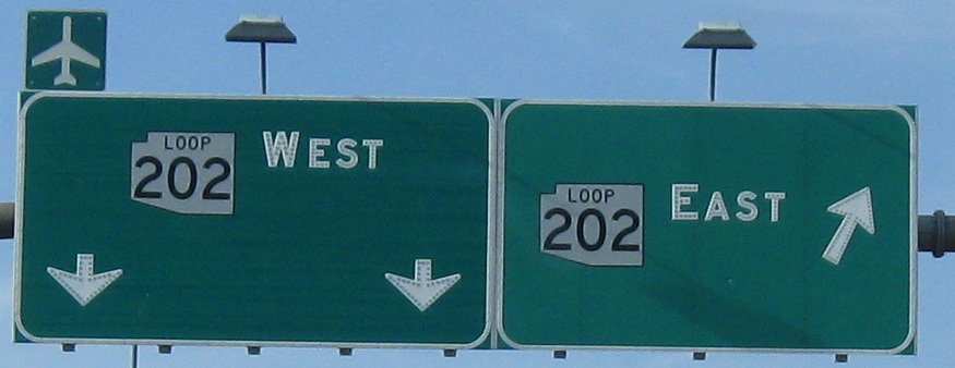 Arizona originally had colored shields for all three loops. You saw Loop 101's at top, and Loop 202 was clearly white on pale puce. (What a lovely color name.) Actually, it was brown, and just like Arizona's other brown signs, many of the 202 shields faded badly. They've figured it out now, but too late to save the inventive color scheme.