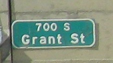These sign backgrounds are in desperately bad condition. The nice thing about button copy is that it doesn't matter, because the letters can be seen day or night. The bad thing is that the signs were installed in 2000. The experiment with graffiti-resistant covering was a failure, itself turning into a mocking graffiti of sorts.