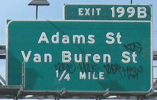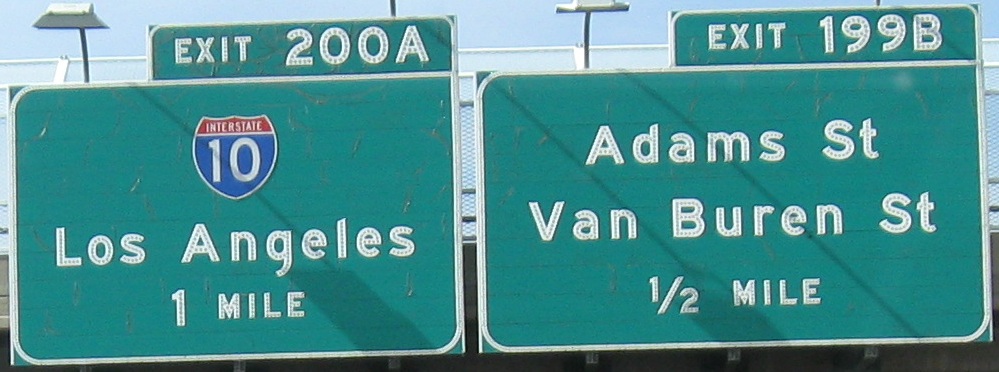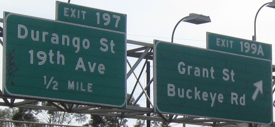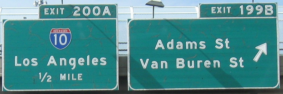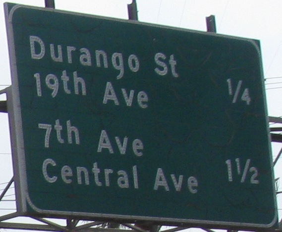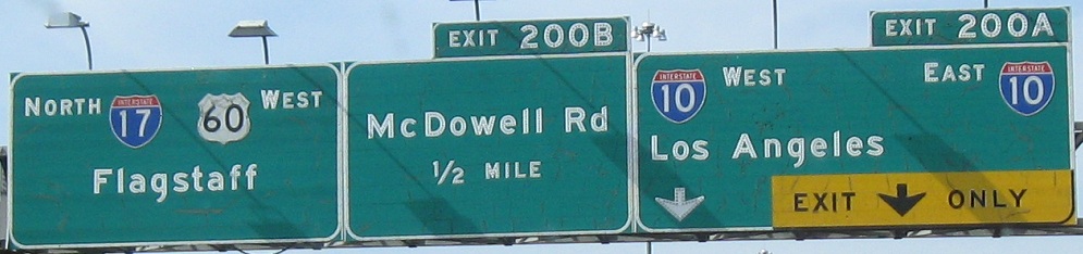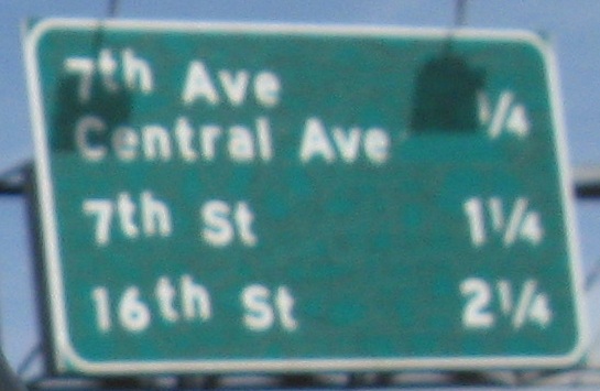 Only the numbers are button copy in that last photo. How does this come about? The exit sign itself is probably newer than 1998, but ADOT still had (and has, just in case repairs are needed) spare button copy numbers in storage. Central Ave. is the dividing point in Phoenix, so you have 7th St. to the east and 7th Ave. to the west, both important enough for consecutive exits. Dear Phoenix residents, does that ever get confusing?