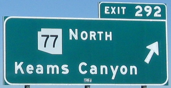 EB on down the Exit 294 ramp, dropping off AZ 77 along the way. Button copy fades after this - it's already gone from the ¾-mile advance sign (only on the blue sign below).