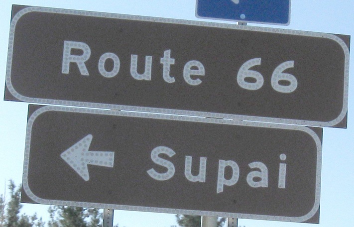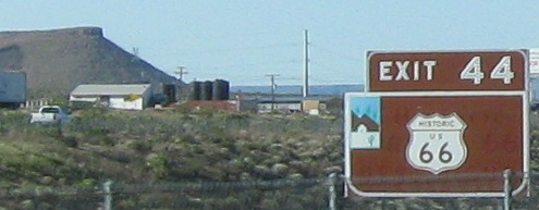 WB for an exit thanks to a long dead-end of former US 66, and signs at the top of the Exit 44 ramp. Although Historic US 66 is signed both ways from the exit, neither direction of Shinarump Drive was ever 66 (temporary construction alignments don't count). It's just the only link between two sections of the route. The first brown sign originally spelled out Historic Route 66 before ADOT invented the shield to contain it all. Which, by the way, I love because it preserves the historic shape as well. If you can notice the "66" in the shield, then this design should continue to be used everywhere with the state name replacing "Historic."