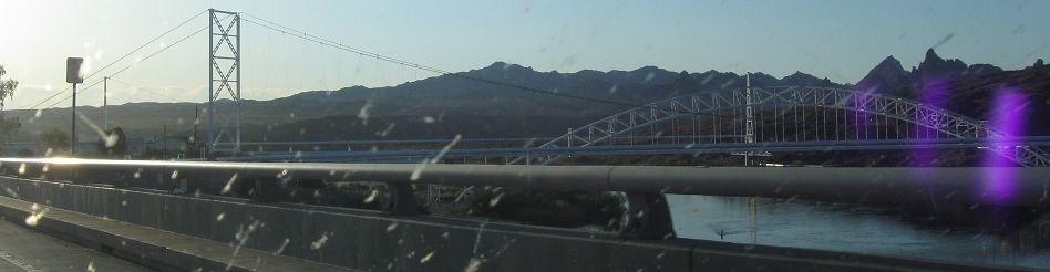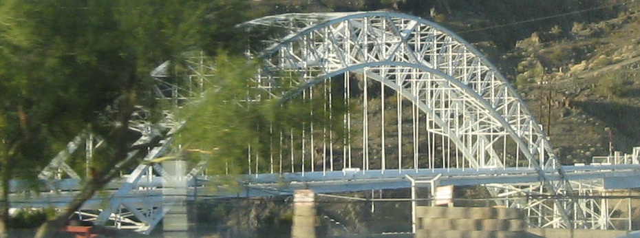 Entering Arizona, US 66 originally crossed the Colorado River on the much older (1916 or 1919, sources vary) arch bridge to the south. The suspension bridge was built later for Pacific Gas & Electric, who took over the US 66 Old Trails Bridge in the 1940s for the same purpose - getting utilities to California. From that point until I-40 came into being, US 66 crossed the Red Rock Bridge (same name as the original pre-66 crossing) just south of where I-40 crosses now. That one must not have been as beautiful, because it was subsequently removed.