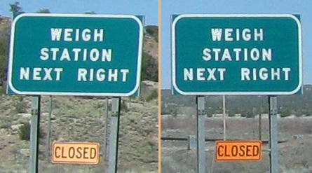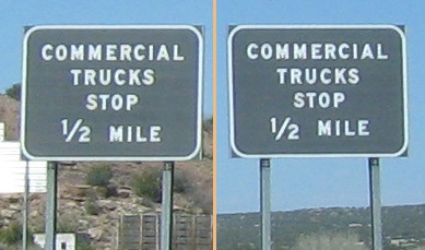 All EB, ending with an Indian Route shield courtesy Matt Kleiman. The truck and weigh station signs that look identical are across from each other on either side of the roadway.