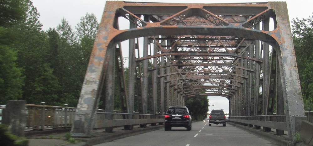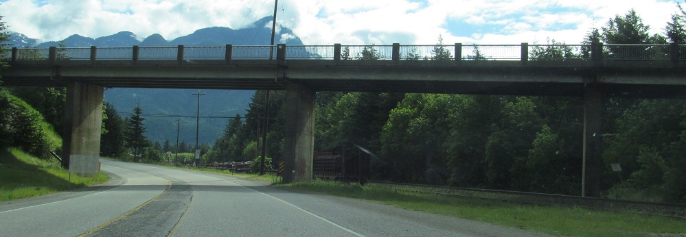 BC 7 still has a swing bridge. These old EB and WB signs are at Harrison Mills Bridge over the Harrison River.