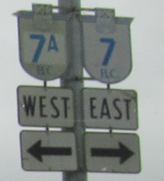Another older shield and another former route, which paralleled BC 7 a few miles to the north until 2006 and headed downtown. Both 7 and 7A once ended at BC 99.