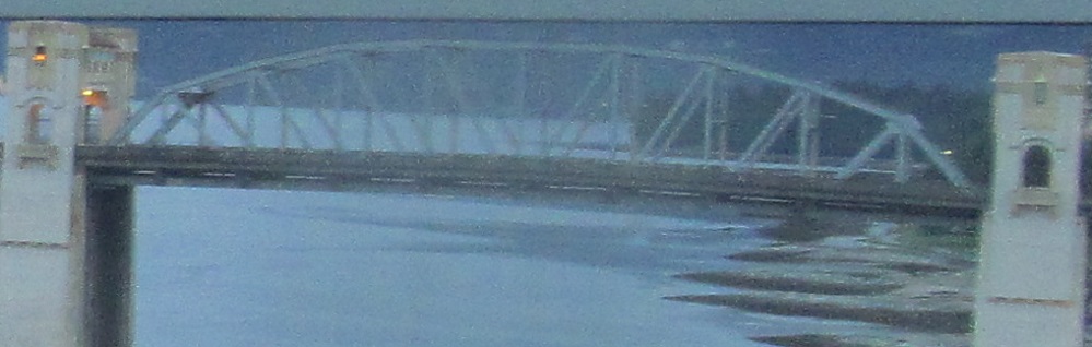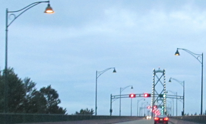 Now heading south across the heavily used bridge. Look, there's a reversible lane so you can get two lanes of traffic downtown from the northern suburbs in the morning! That's plenty of capacity.