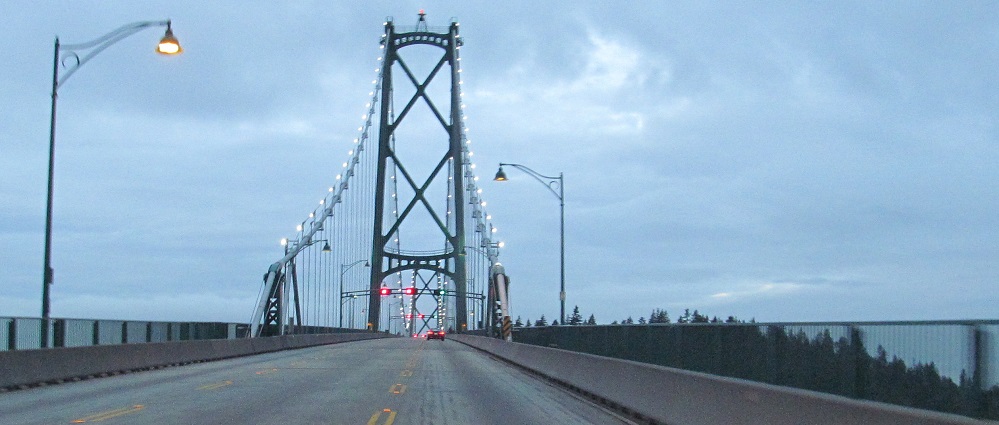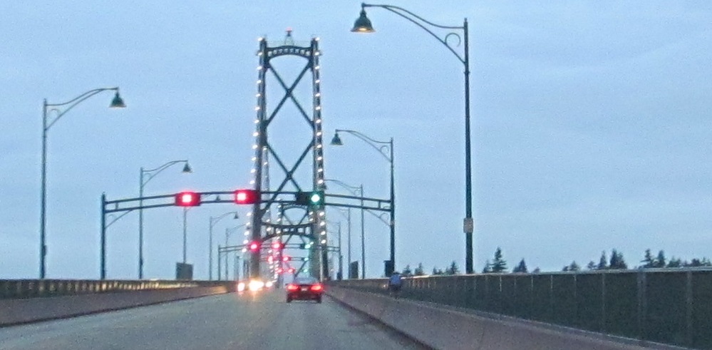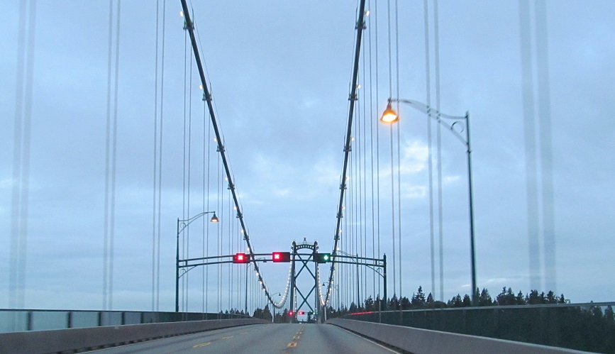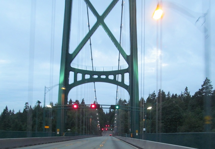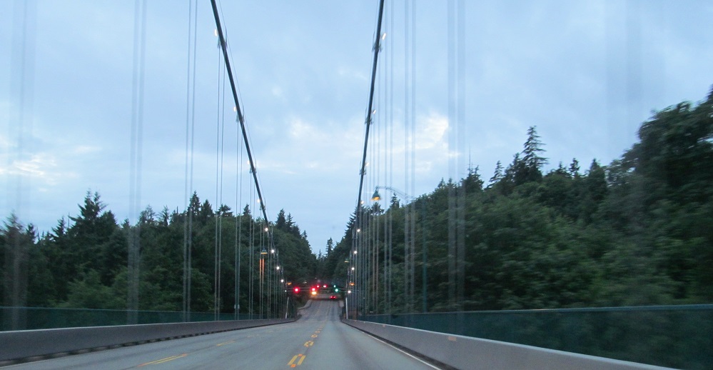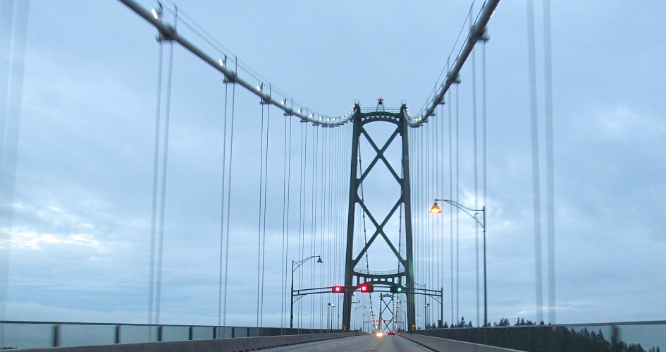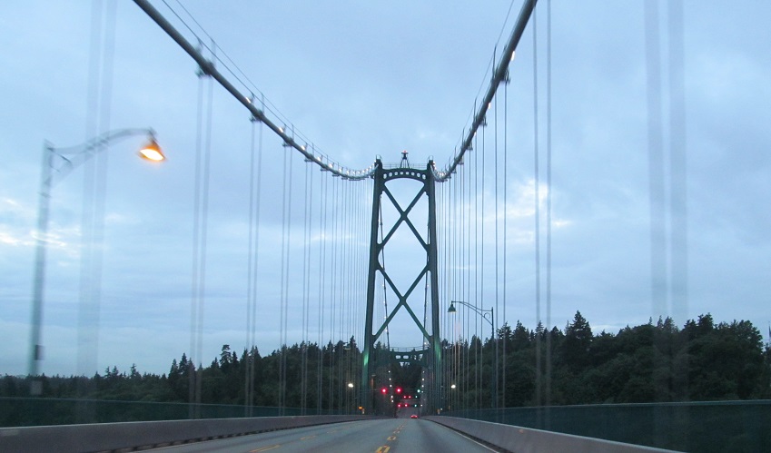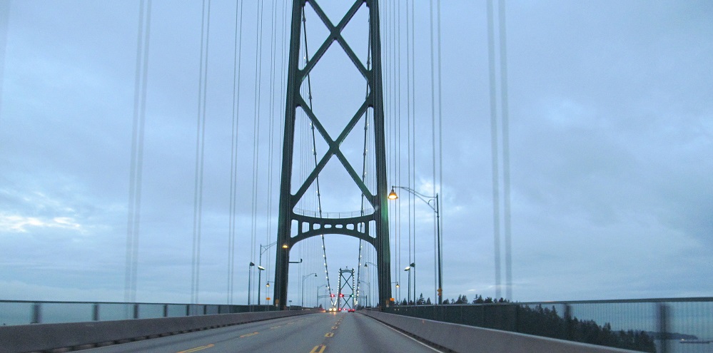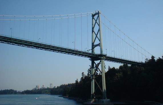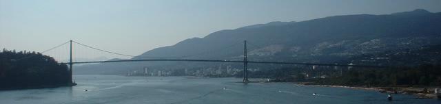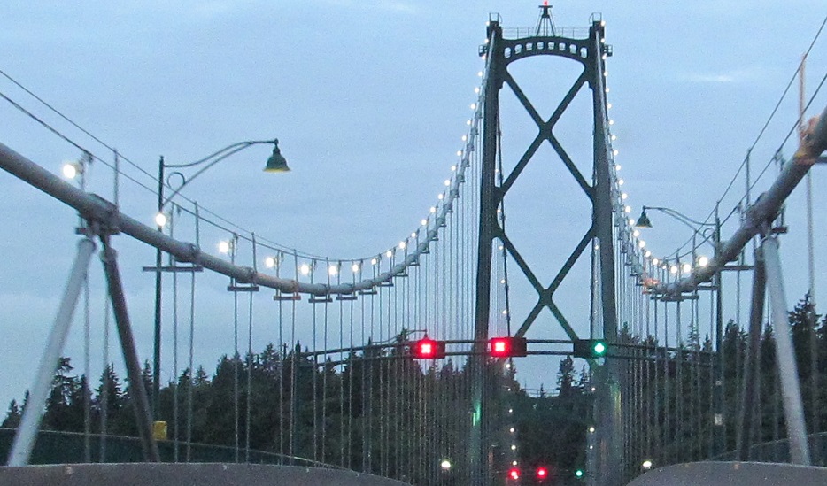 The Lions Gate Bridge, world-famous suspension crossing of the Burrard Inlet. It only carries three lanes (middle is reversible), and traffic really demands a parallel span, but the architectural beauty of the bridge can at best be approximated, never duplicated, certainly not surpassed.