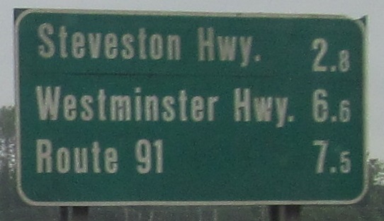 BC 99 NB/BC 1A WB at the northerly of the two Marine Drives in 2004, where the routes turn westward on their way to meet BC Trans-Canada 1. There are North, West, and East Vancouvers, but sorry, no South.