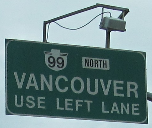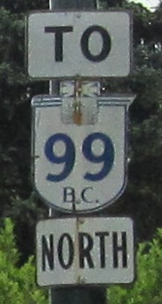Named after the former US 99, BC 99 now connects directly to I-5 instead. But I-5 runs over US 99's old bridges in Washington, so it's all good.
