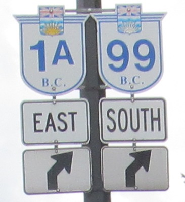 SB on BC 99 in Vancouver is also EB on BC 1A - or was until 2016, but I was there in 2004. 1A functioned as Business TCH 1 more or less, running into the city while the freeway bypasses it to the north and east. A rump of it may still officially exist, entirely multiplexed with BC 99 from TCH 1 to the city boundary along the Lions Gate Bridge, which of course begs the question why.