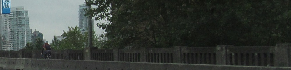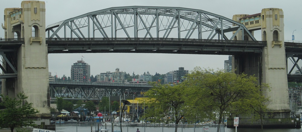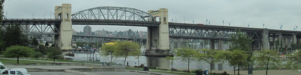 Looking east from Sunset Beach Park at the bridge, with the Granville Street Bridge (BC 99) behind it.