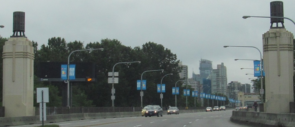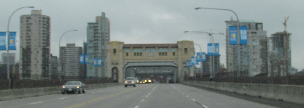 The northern approach of the Burrard St. bridge over Beach Ave. EB.