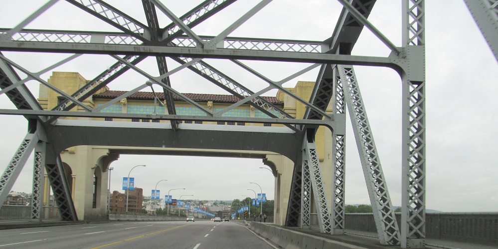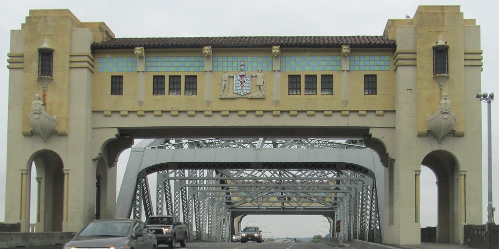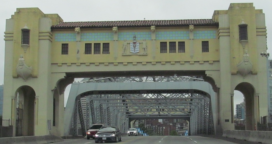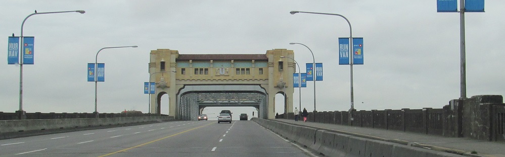 A northbound trip over the 1932 Art Deco bridge. The southern approach is much longer than the northern.