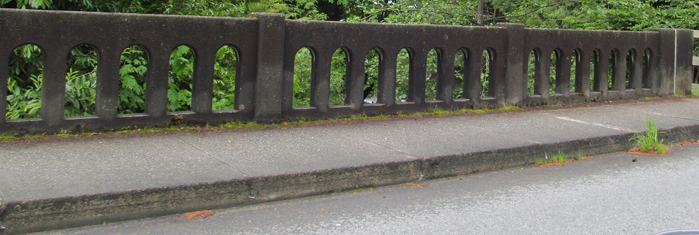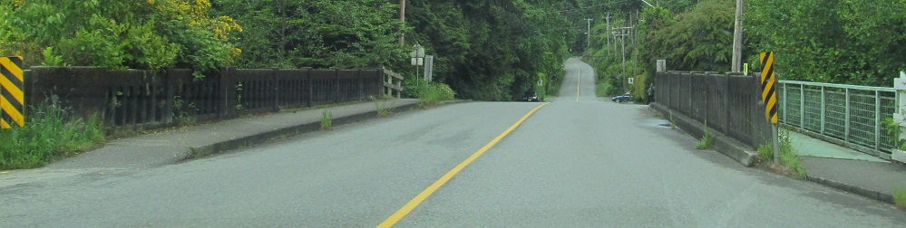 A collection of older infrastructure on Marine Dr. WB. The only historic part of the Godman Creek bridge visible from the top is the abutment, while Cypress Creek has a bit more going for it. Marine Drive ends at the roundabout depicted in the last photo.