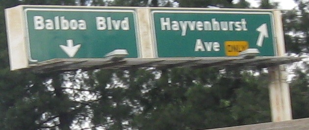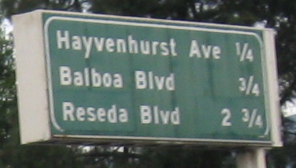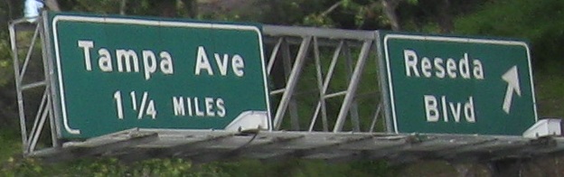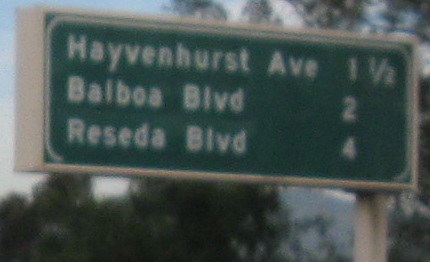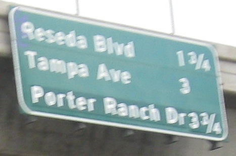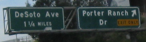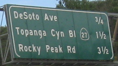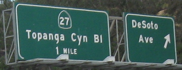 Why bother greening out the word "EXIT" on these advance signs? If it's for MUTCD compliance, Caltrans has never really done anything based on the rest of the nation regarding signing practices, so why this one thing? For example, look at the next to last photos for DeSoto Ave. Notice that the white border is inset, and not just that, but it's not even present on the bottom of the sign. That's decidedly un-MUTCD-like.