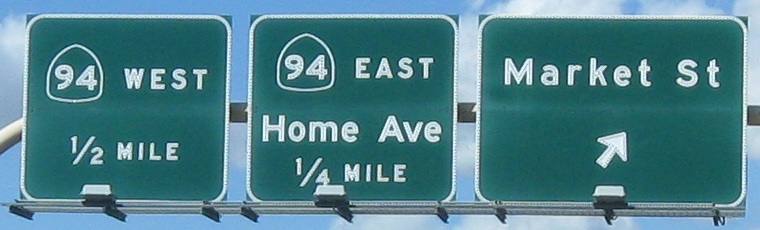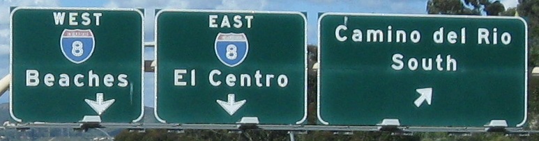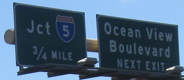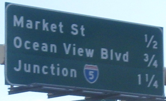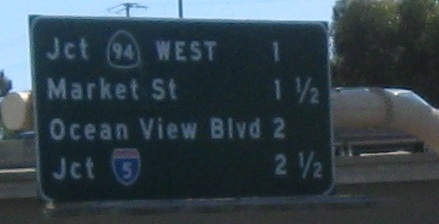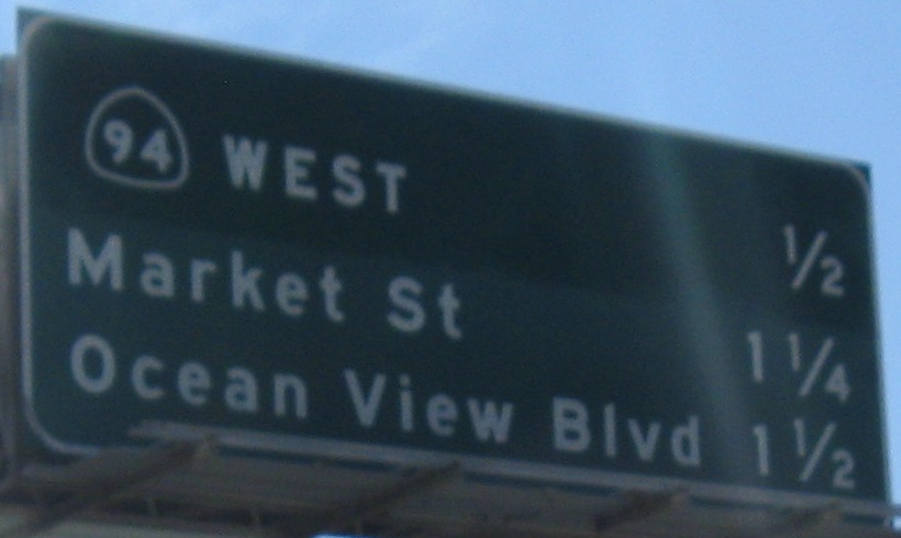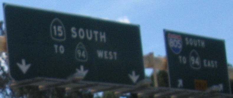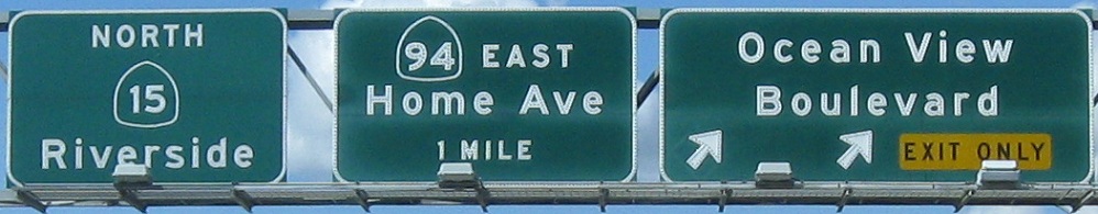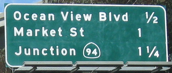 The last photo is on the Exit 2B ramp, which is the exit for CA 94. For an interchange that's about to be redone, CA 94 has all new signs. I guess that'd be considered a waste of money in most states.