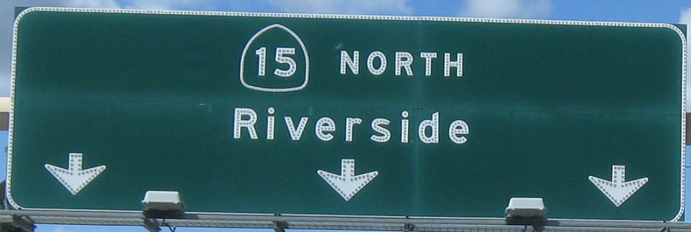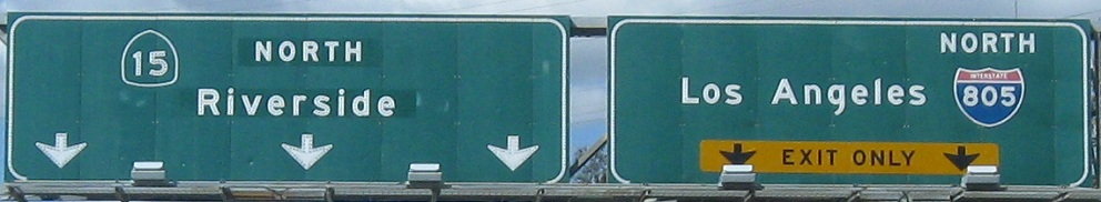 The end of CA 15 and the beginning of I-15, never mind the reassurance shields for the state route. The last two photos are on the left and right sides of the same gantry.