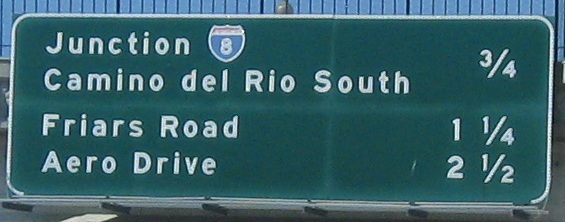 The first two photos are on the Exit 6B ramp (alongside the freeway), and the third is the last sign on the mainline before passing under I-8 and magically becoming an Interstate. CA 274 no longer exists, but even when it did, it was never on Aero Drive.