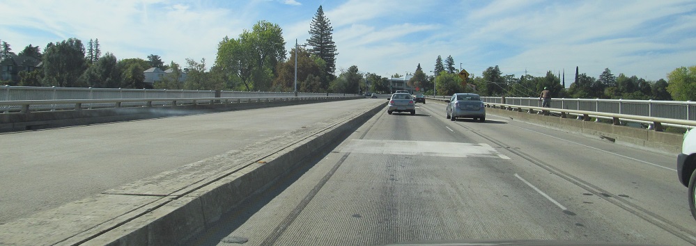 Heading south across the Sacramento River on a bridge built in 1935 and widened in 1961, all when this was US 99. (Check out the Diestelhorst Bridge page linked below for pre-1935.)
