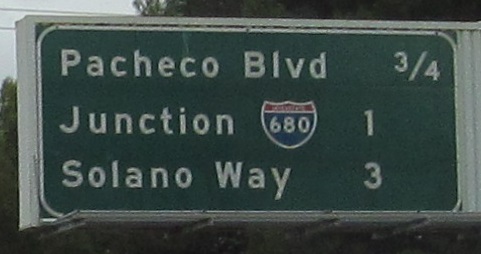 EB button copy up to Exit 12A, where the sign on the left is all that's original. The first two signs have a whole lot of patching going on. Center Ave. was built in the 1980s, so the signs may have been erected prior to that and left space for it. I don't understand why the distances needed to be patched on the first sign, unless it originally listed Pine, Morello, and Pacheco with three distances.