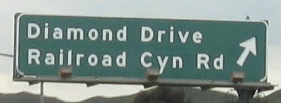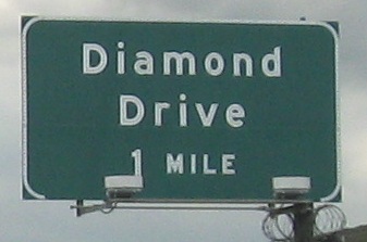 Diamond Drive, 1 mile. Diamond Drive... gone. Guess I missed it. Oh, look, there it is. Quick, swerve all the way across to the exit!