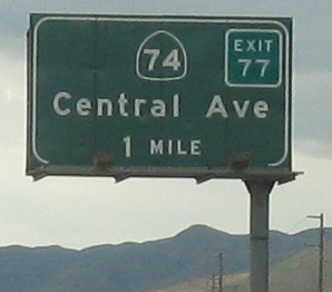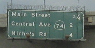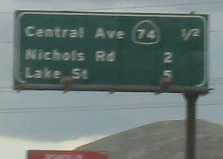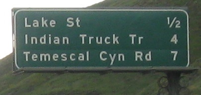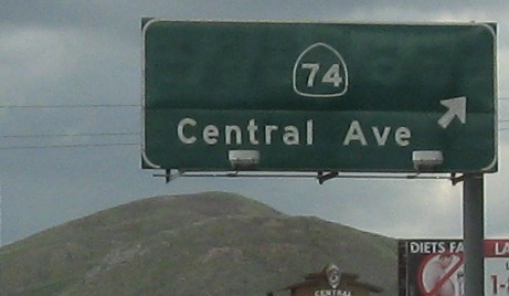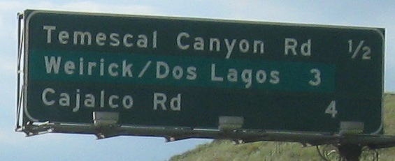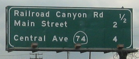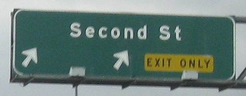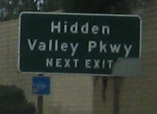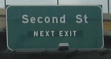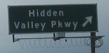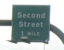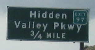 An unusual setup for the last two photos, where the Second Street sign is actually up in the median on the SB gantry, while the Hidden Valley Pkwy. sign is across from it on the right.