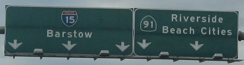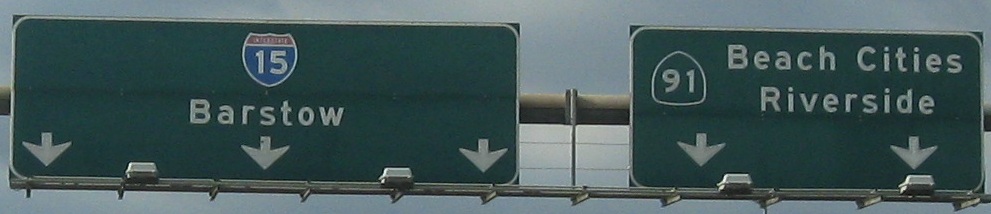 The last two photos are on the Exit 150 ramp, which is to CA 18 WB and Business I-15 NB (and Historic Route 66 EB, leaving I-15). The distance sign before them was a zoom job as I started to exit, for the next three exits along I-15/CA 18.