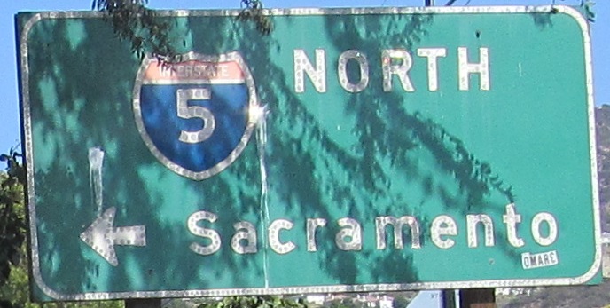 The onramp from 5th St. and W St. in Sacramento splits to Bus. I-80 WB (left side of gantry) and I-5 SB (right side) in the midst of a larger interchange.