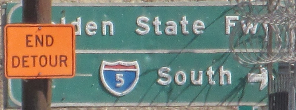 Yet another odd spec for an I- shield in California, Olympic Blvd. EB at Telegraph Rd. at I-5 Exit 131A. It's directional, so the next entrance to I-5 SB is Exit 130.