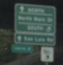 The last two photos are on the Exit 47 ramp. There's one lane until it splits, so three arrows is pure overkill. SB is a 2-lane loop directly to Main St. and NB follows it around the loop to San Luis Rd.