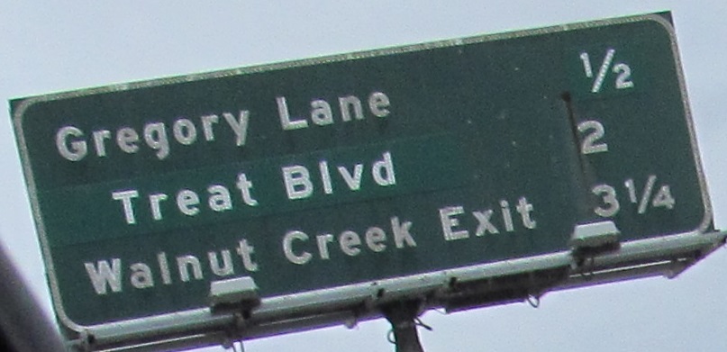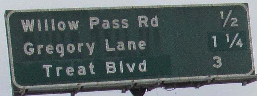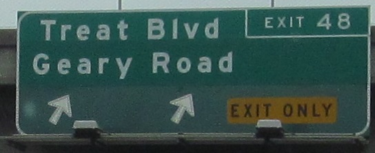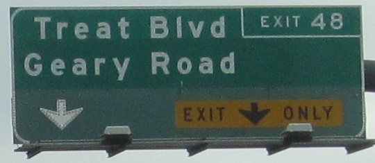 The last photo is on the Exit 49 ramp. The one before that is the most I could see from the NB lanes. Treat Blvd. was Geary Rd. until it was extended east into Walnut Creek.