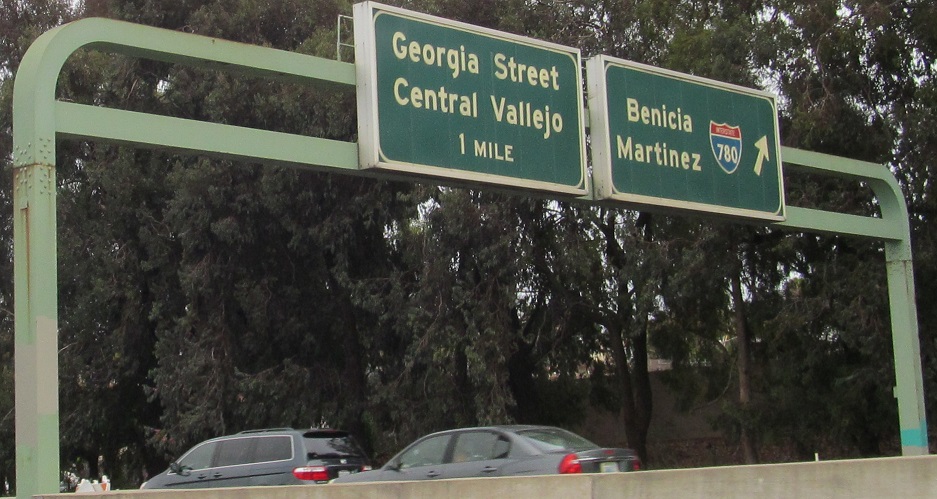 EB in Vallejo to a truly unique sign structure unlike any I've seen in California. The signs are also unique, as they are backlit.
