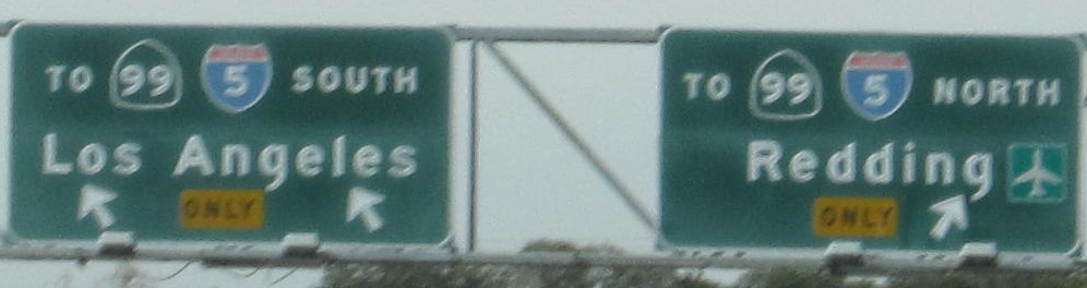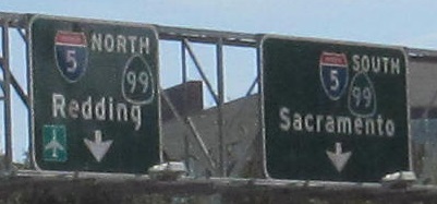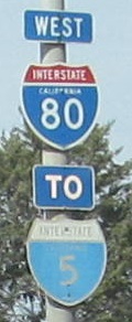 I-880 was the bypass of Sacramento. If you know your Interstates, I-880 is now south of San Francisco, heading around the bay to meet I-580. This is because I-80 was rerouted onto I-880 around Sacramento, and former I-80 became I-80 Business (and also parts of US 50 and CA 99). Note the tacked-on 99 shields on I-880, which don't make sense to me (since these signs pretty clearly did not have US 99 shields on them before, or any other kind of shields than I-5).