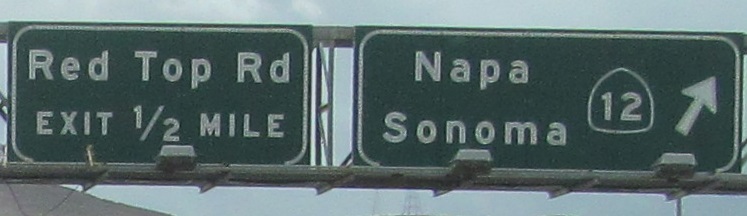 A passel of WB signs back into Vallejo. The 2nd/3rd and last two photos are left and right on the same structure, while the 3rd from last is the only button copy at Exit 33B among other signs.
