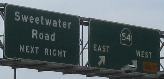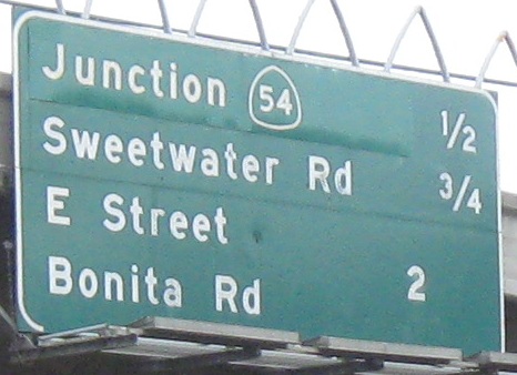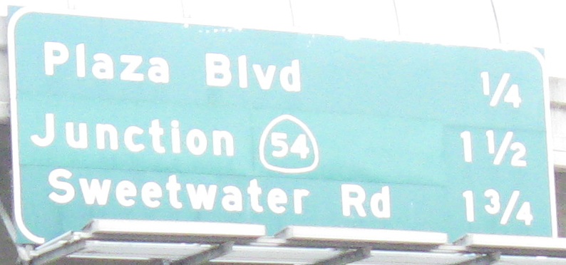 In the NB direction, CA 54 is Exit 8 and Sweetwater Rd. is Exit 9, but, as expected, they switch numbers SB due to the order of the exit ramps.