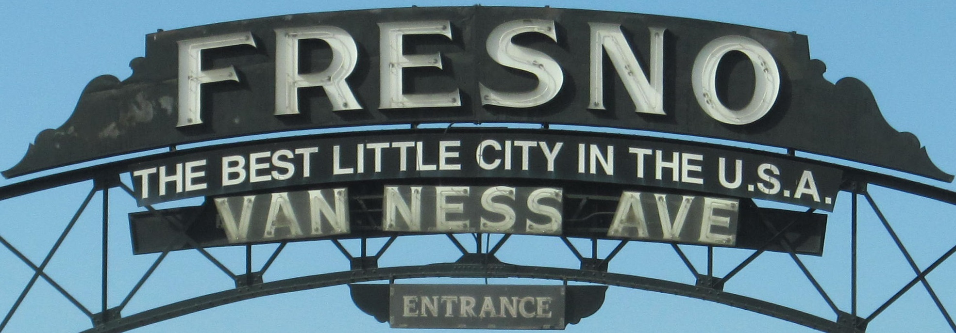 The classic Fresno sign should be easy to find once I give you this clue: it heads north from Railroad Ave. Click for neon (but unlit) closeup.