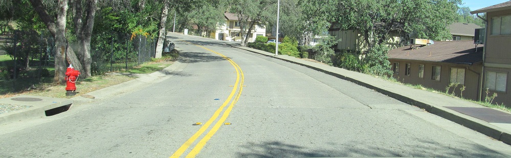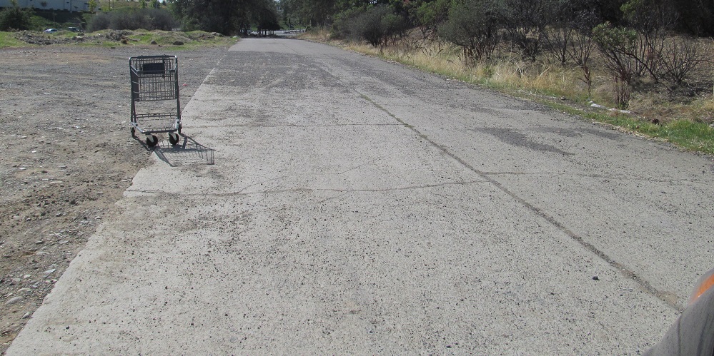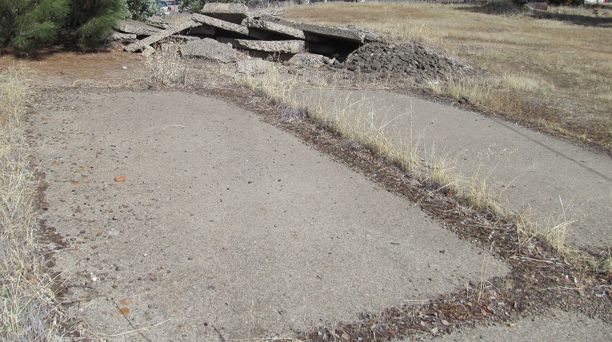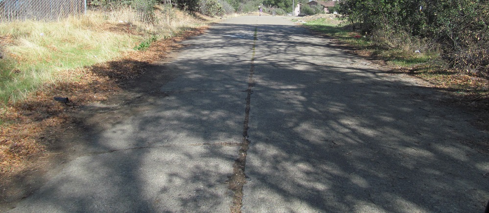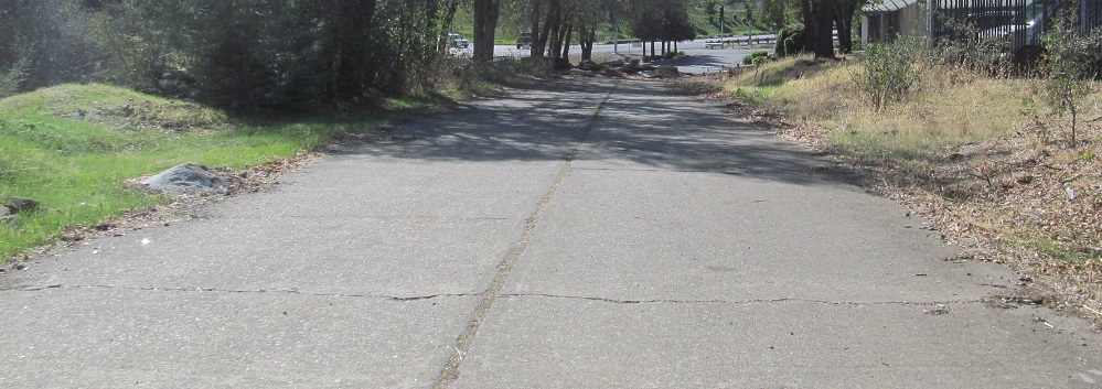 Our next visit is to a short length of abandoned two-lane concrete on the northwest corner of CA 299 and Boulder Dr. in Redding. These photos, heading south, are of the original US 99 alignment north of downtown. US 299 ran from US 101 to US 395 and actually multiplexed with this short segment of US 99, but was numbered as an x99 perhaps because that was the only 2dus it intersected. (You may want to reference the glossary to parse that sentence.) Anyway, by the 1940s it was already bypassed by a straighter alignment that is now CA 273 (see big link at bottom) and abandoned in place.